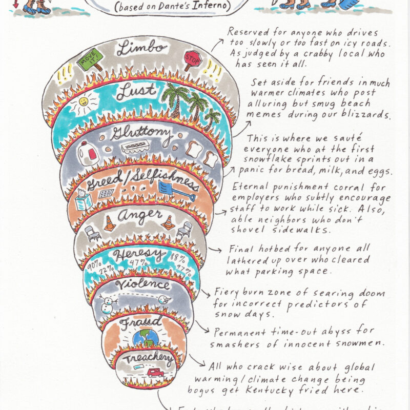 Beth Wolfensberger Singer, “The nine concentric circles of New England winter hell” (2016)