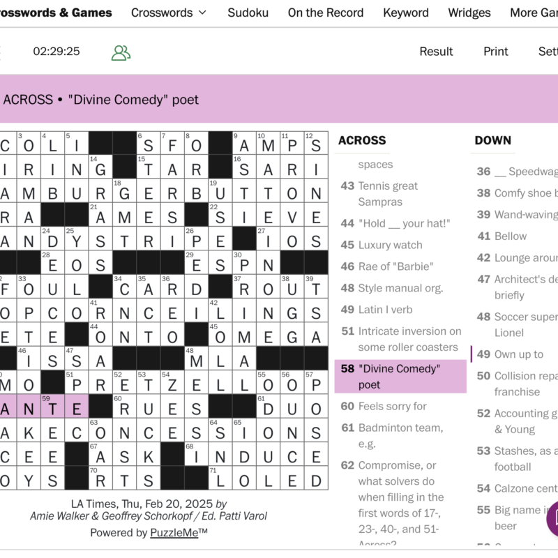 Daily Crossword, February 20, 2025