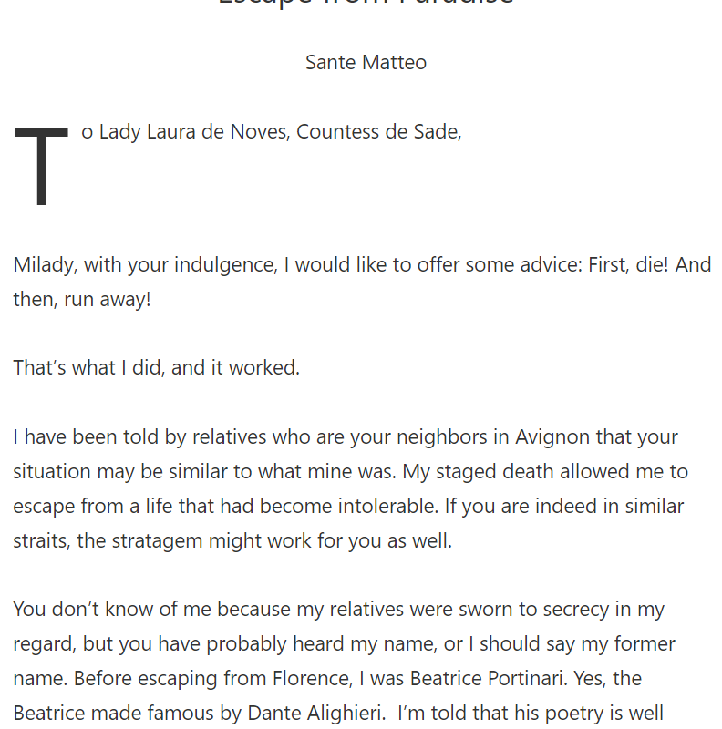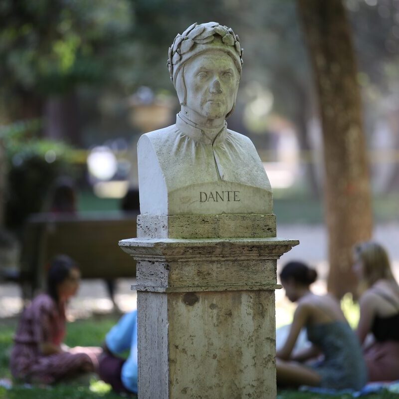“Abito in poliestere dipinto a mano per i 700 anni dalla morte di Dante”